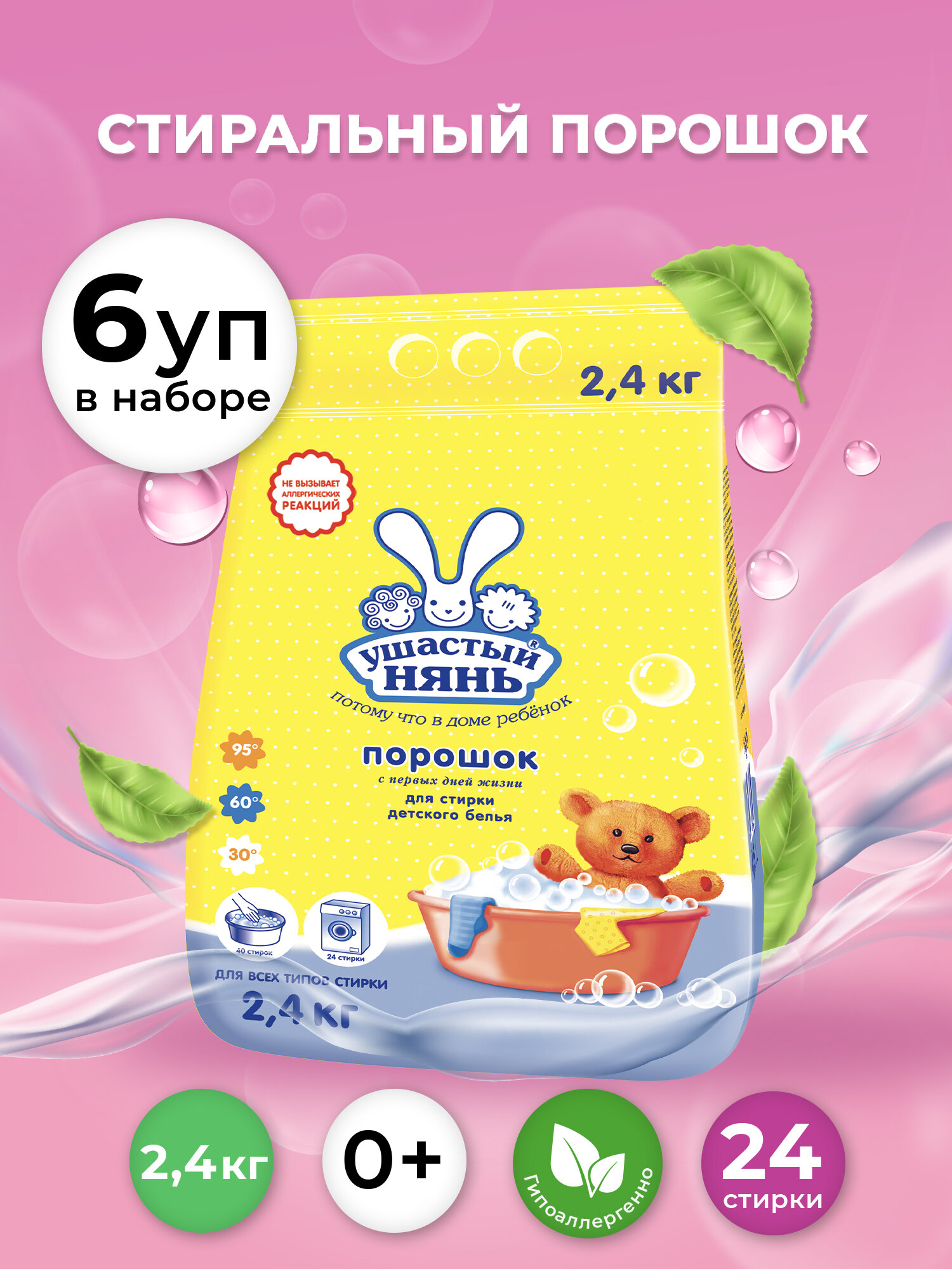 Купить Стиральный порошок Ушастый Нянь детский 2,4кг (6 шт в упаковке) с доставкой по всей России. Стиральный порошок Ушастый Нянь детский 2,4кг (6 шт в упаковке): сравнение цен, характеристики, фото, актуальное наличие и цены.