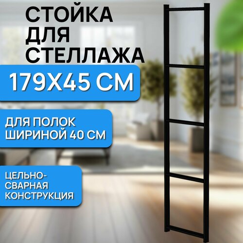 Боковина 1 штука для стеллажа высотой 179 см, ширина 45 см. Для полок шириной 40 см 5 штук. Изготовлены в стиле лофт из профильной прямоугольной стальной трубы 40х20 мм. Предусмотрены отверстия для крепления стеллажа к стене. Окрашены устойчивой полимерно-порошковой покраской. Максимальная нагрузка на стеллаж 750 кг. Без полок.