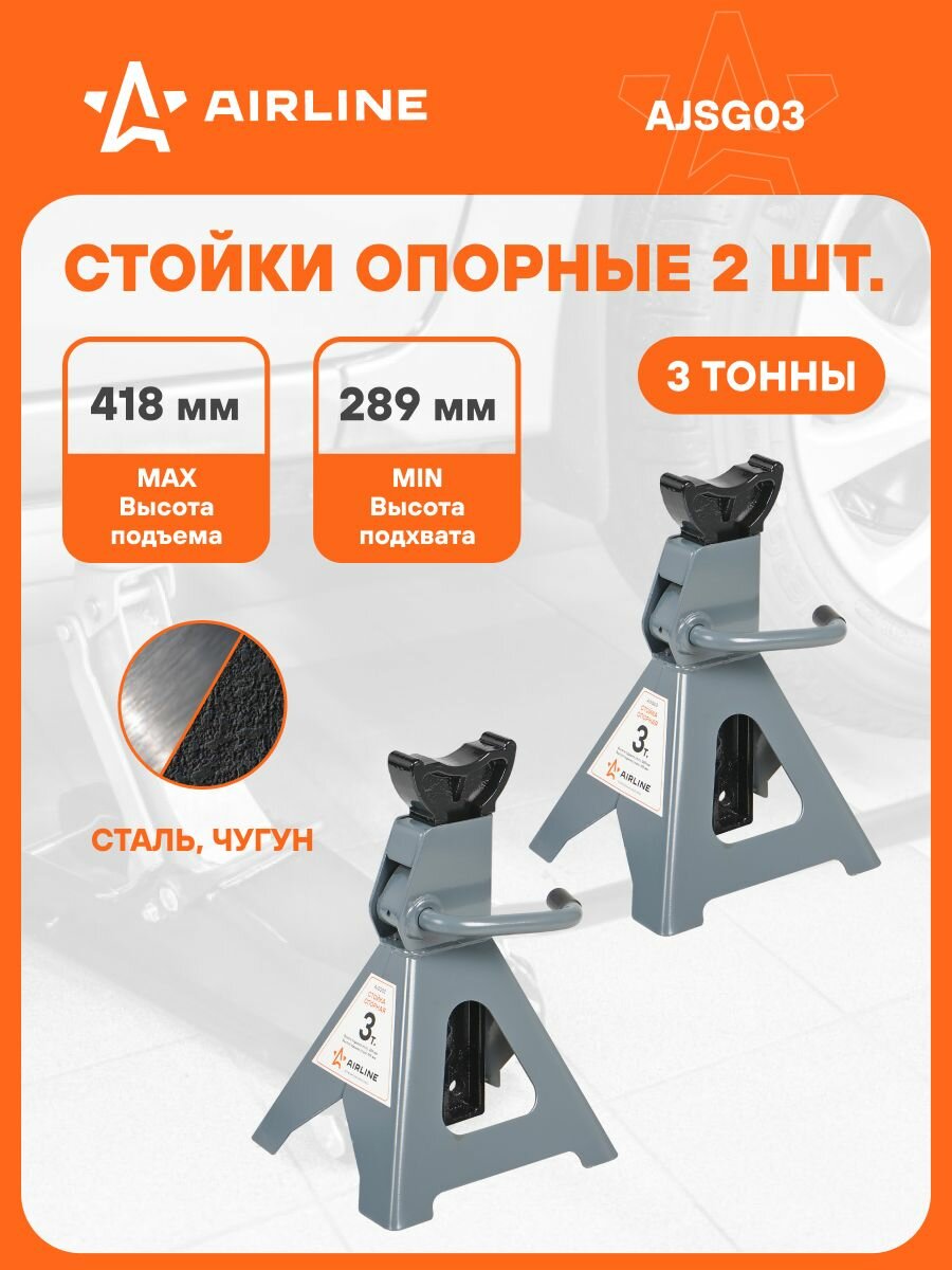 Купить Стойка 2 уп страховочная для автомобиля 2 шт MIN-289 мм, MAX-418 мм, 3 т стойки опорные AIRLINE AJSG03 с доставкой по всей России. Стойка 2 уп страховочная для автомобиля 2 шт MIN-289 мм, MAX-418 мм, 3 т стойки опорные AIRLINE AJSG03: сравнение цен, характеристики, фото, актуальное наличие и цены.