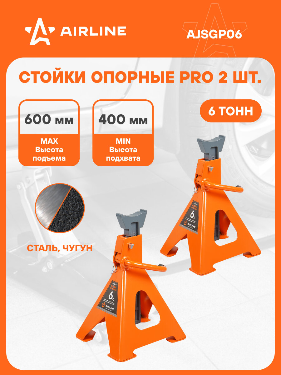 Купить Стойка 2 уп страховочная для автомобиля 2 шт Pro MIN-400 мм, MAX-620 мм, 6 т стойки опорные AIRLINE AJSGP06 с доставкой по всей России. Стойка 2 уп страховочная для автомобиля 2 шт Pro MIN-400 мм, MAX-620 мм, 6 т стойки опорные AIRLINE AJSGP06: сравнение цен, характеристики, фото, актуальное наличие и цены.