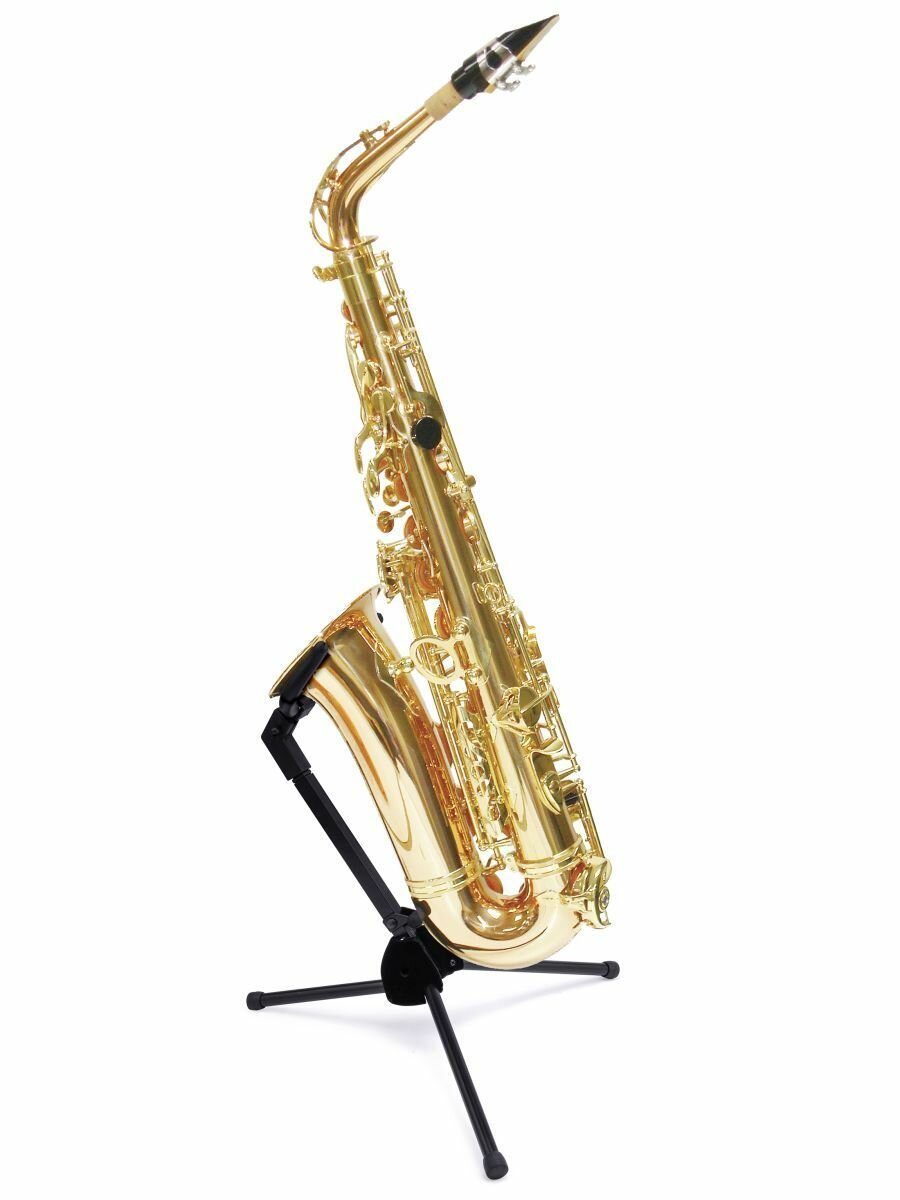 Стойка для саксофона альт TravLite HERCULES DS431B легко и компактно складывается и хранится внутри раструба инструмента.