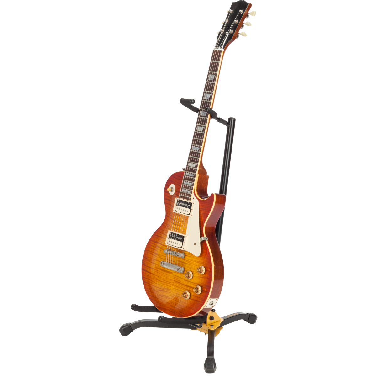 Универсальная напольная стойка для гитары. Имеет прочную металлическую конструкцию с SFF (поролон) покрытием контактных частей для предотвращения повреждения корпуса гитары. Верхний хомут имеет безопасную систему задержания, которая сохранит вашу гитару на позиции. Установка стойки производится при помощи трех блокировочных кнопок. Вся конструкция стойки легко складывается и упаковывается.