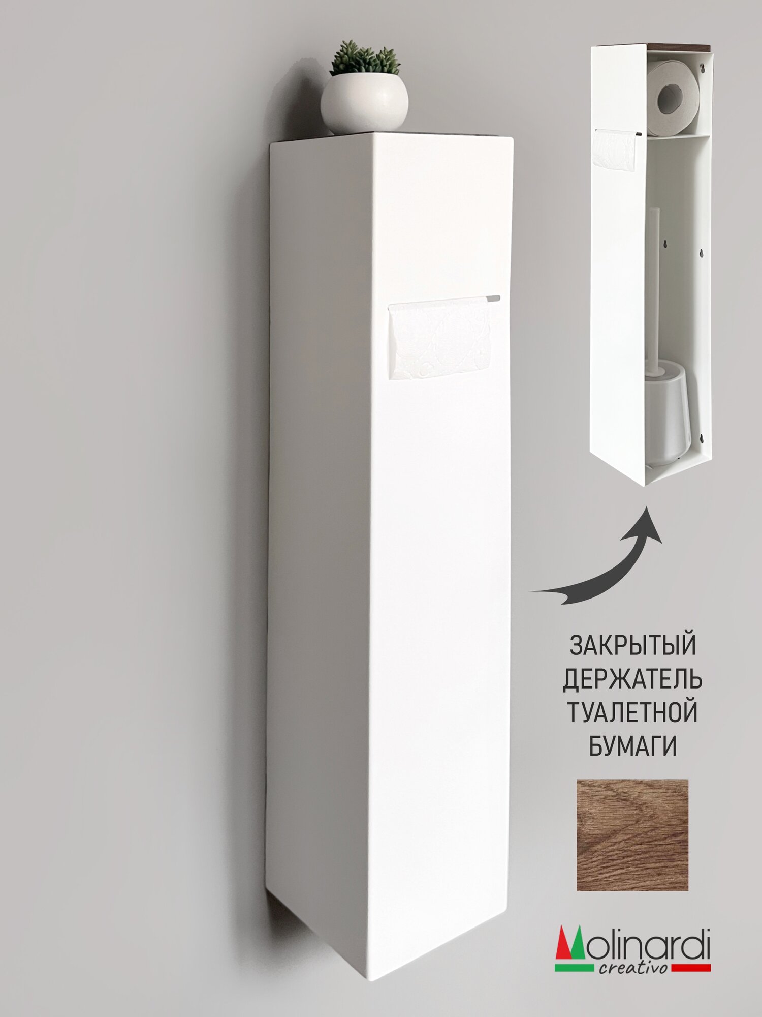 Удобный и компактный держатель для туалетной бумаги, оснащен всеми необходимыми функциями, для того чтобы пользование туалетом стало комфортнее. Этот элегантный аксессуар сочетает в себе три незаменимых элемента, обеспечивая порядок и комфорт в вашем туалете, полку, держатель и место для ершика. Особенности: компактный дизайн, идеально вписывается в любое пространство, экономя место и придавая интерьеру современный вид. Стойка имеет практичный и доступный диспенсер для туалетной бумаги (со втулкой и без втулки) с полкой для телефона и других принадлежностей, которые всегда под рукой. Основа держателя изготовлена из высокопрочной стали с полимерным покрытием имеет надёжное износостойкое покрытие. Ершик Вы можете поставить свой или приобрести в нашем магазине. Без лишних усилий можно установить этот контейнер для туалетной бумаги на стену или оставить его на полу. Сделайте вашу ванную комнату более организованной и стильной с нашим органайзером — идеальное решение для современного дома! Все наши изделия мы изготавливаем сами, отвечаем за качество каждого изделия, дорожим каждым покупателем. Бренд "Молинарди креативо" - Сделано в России. В комплекте идут крепления.