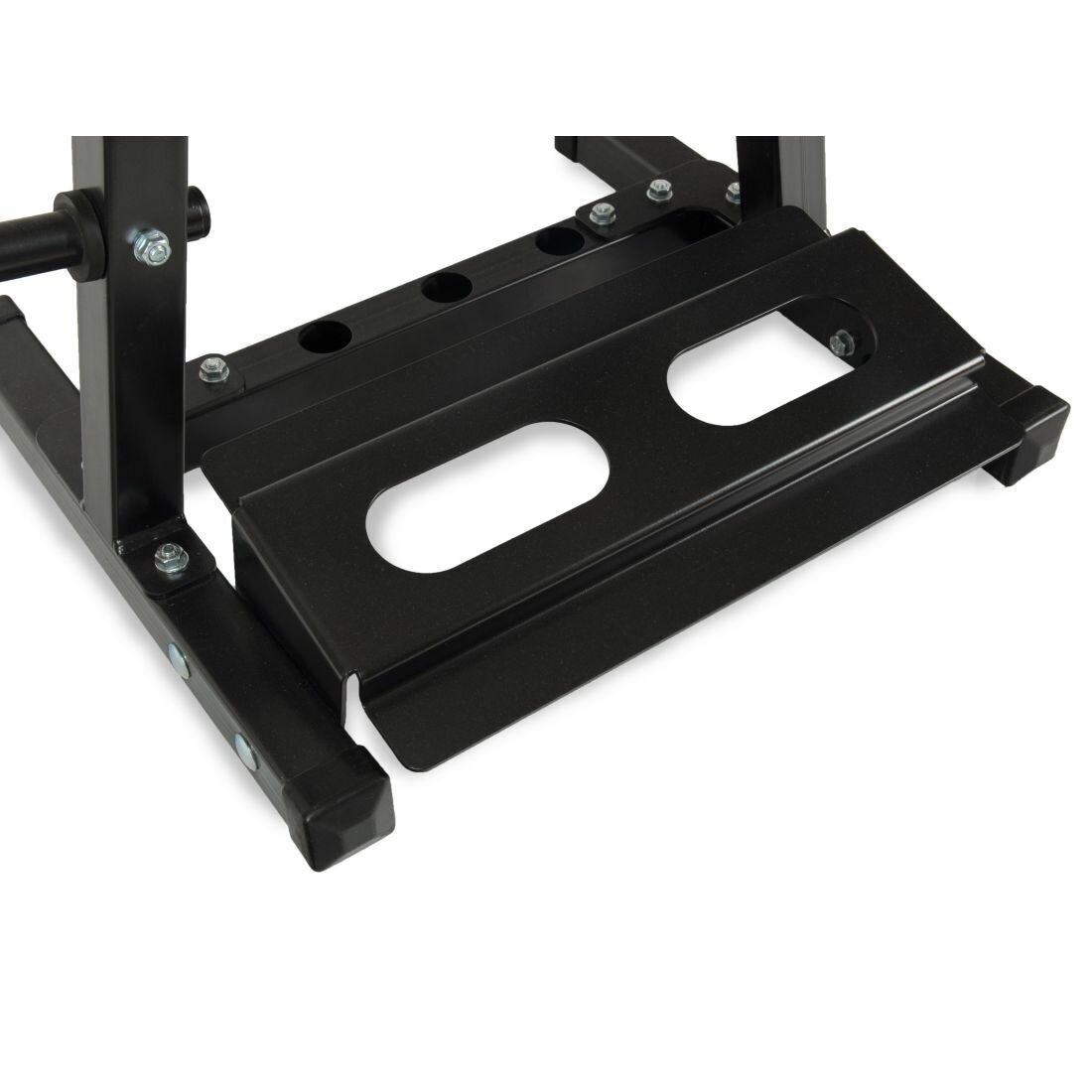 Вы можете быть уверены, что стойка останется на месте, когда вы поместите на нее свое оборудование. Благодаря использованию пластиковых ножек вы избегаете не только царапин на полу, но и сдвигов. Стойка заботятся как о комфорте тренировки, так и о состоянии вашего пола. Забудьте о повреждении, вызванном перемещением устройства.