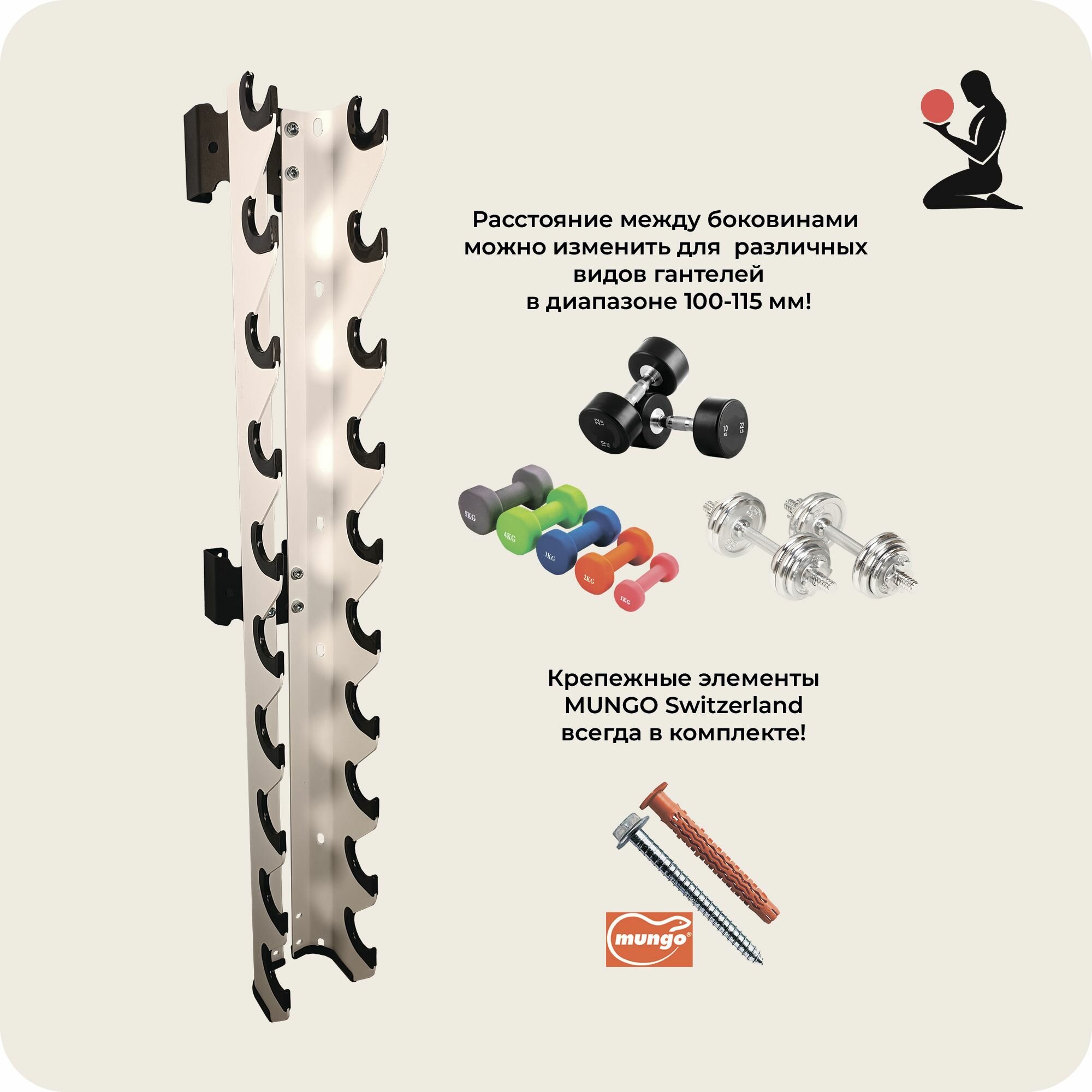 Купить Стойка для гантелей Призма 100-115 настенное исполнение с доставкой по всей России.