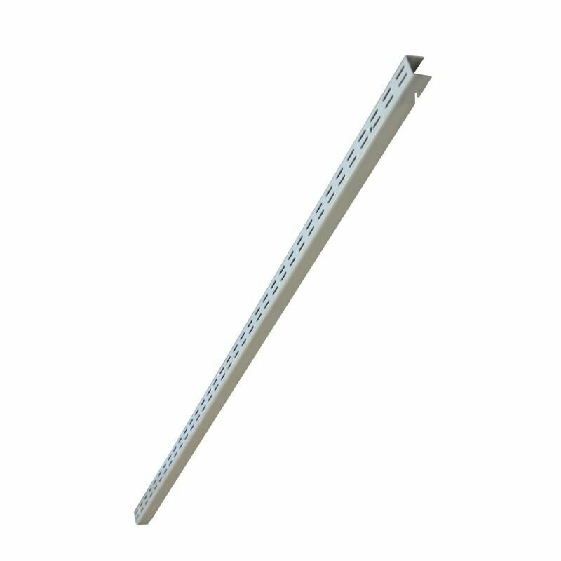 Стойки для монтажа кронштейнов располагаются на несущем рельсе и при необходимости могут дополнительно крепиться к стене. На стойке имеется два ряда пазов для крепления специальных кронштейнов под полки и перекладины. В зависимости от материала поверхности, необходимо правильно подобрать дюбели и саморезы! (в комплект не входят)