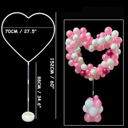 Декоративная стойка для шаров, которая поможет украсить интерьер композициями из воздушных шаров без расхода гелия. Для оптимальной устойчивости стойки с шарами есть возможность заполнения водой подставки-утяжелителя. Примечание: шары в комплект не входят и приобретаются отдельно. 29хØ2 см х 3 шт Размер сердца 64х71 см Общая высота 151 см