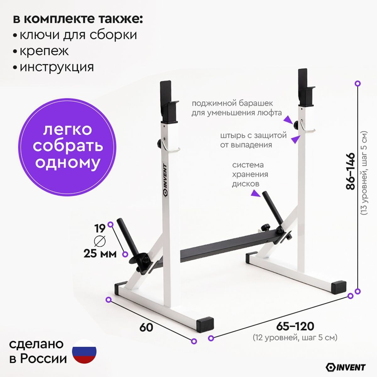 Купить Стойка для штанги без страховки металлическая, подставка под штангу с системой хранения дисков INVENT ST-01 с доставкой по всей России.