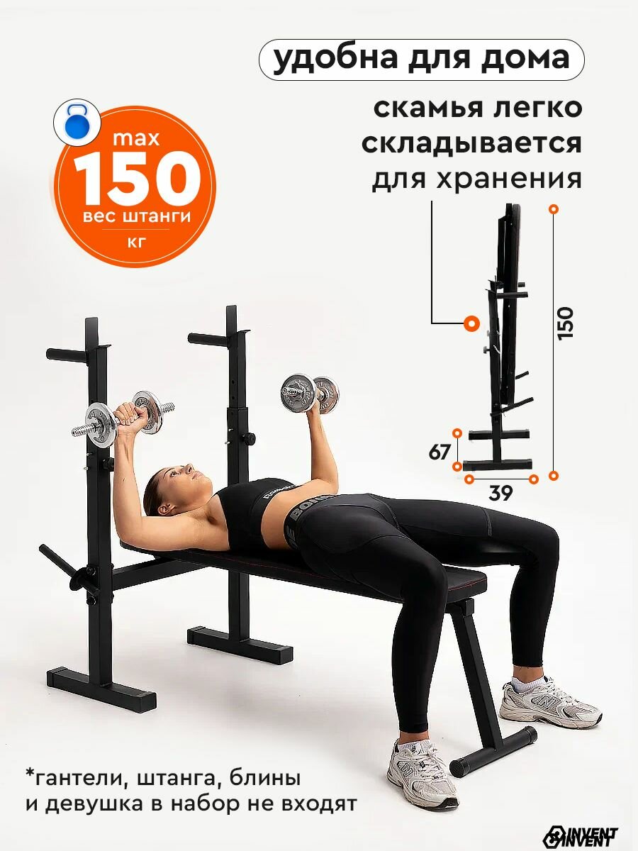 Стойка для штанги без страховки со складной скамьей INVENT ST-03: сравнение цен, характеристики, фото, актуальное наличие и цены.