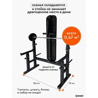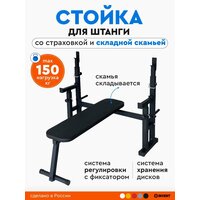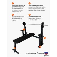 Складная скамья компактна и удобна в использовании, что делает её идеальным дополнением к стойке для штанги.
