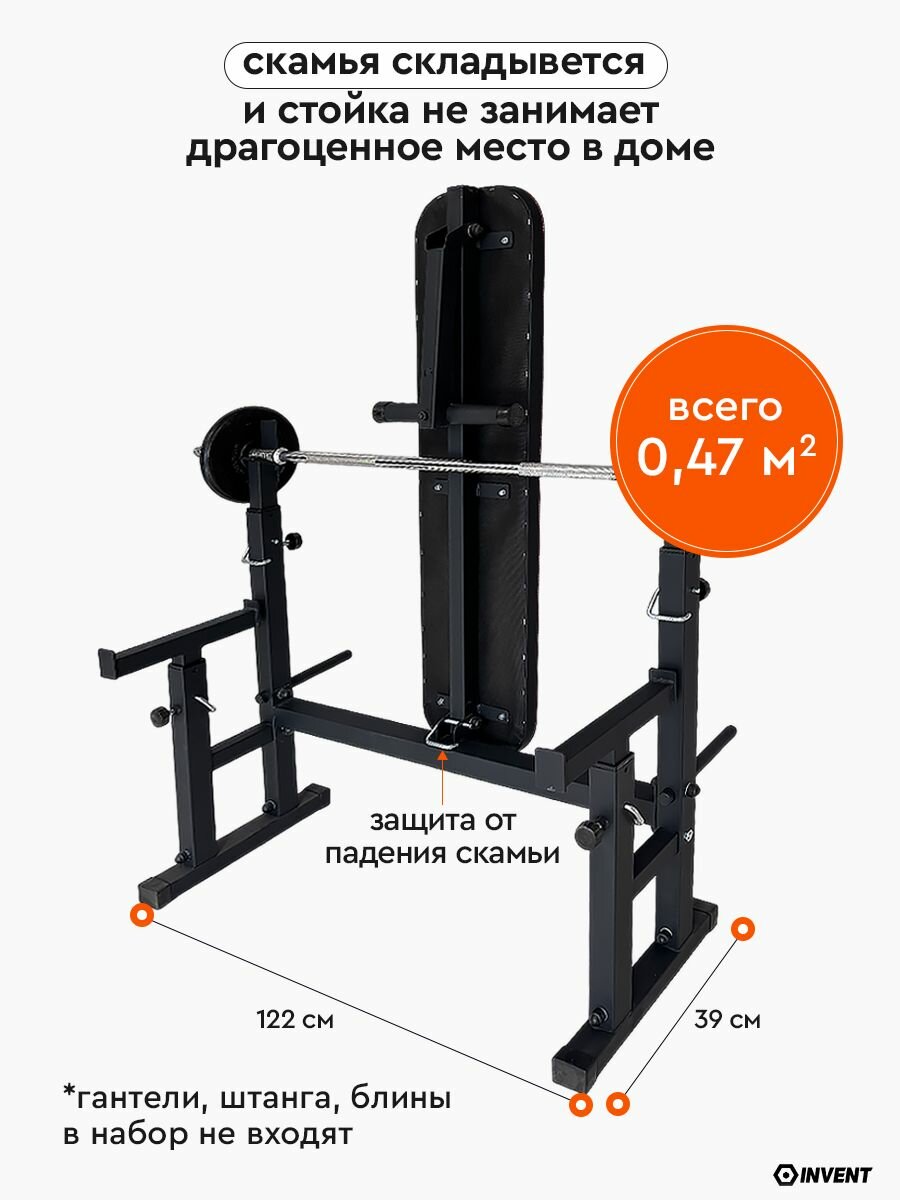 Купить Стойка для штанги со страховкой и складной скамьей INVENT ST-04 с доставкой по всей России. Стойка для штанги со страховкой и складной скамьей INVENT ST-04: сравнение цен, характеристики, фото, актуальное наличие и цены.