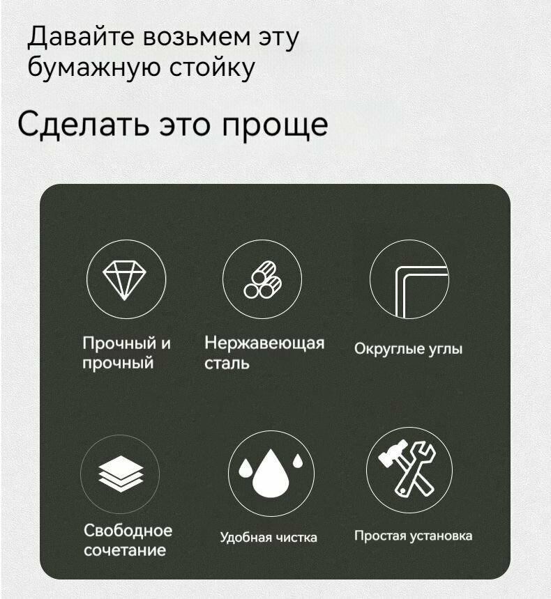 Представляем вам новое решение для вашей ванной комнаты - комплект аксессуаров, включающий в себя не только прочную и стильную полочку для бумажных полотенец из нержавеющей стали, но и удобную подставку для мобильного телефона! Этот комплект обеспечивает все необходимые функции для вашего комфорта и гигиены.