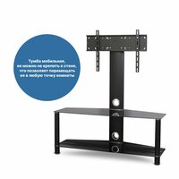 Купить Подставка под телевизор, Аврора, металл, металл, закаленное стекло, цвет черный с доставкой по всей России.