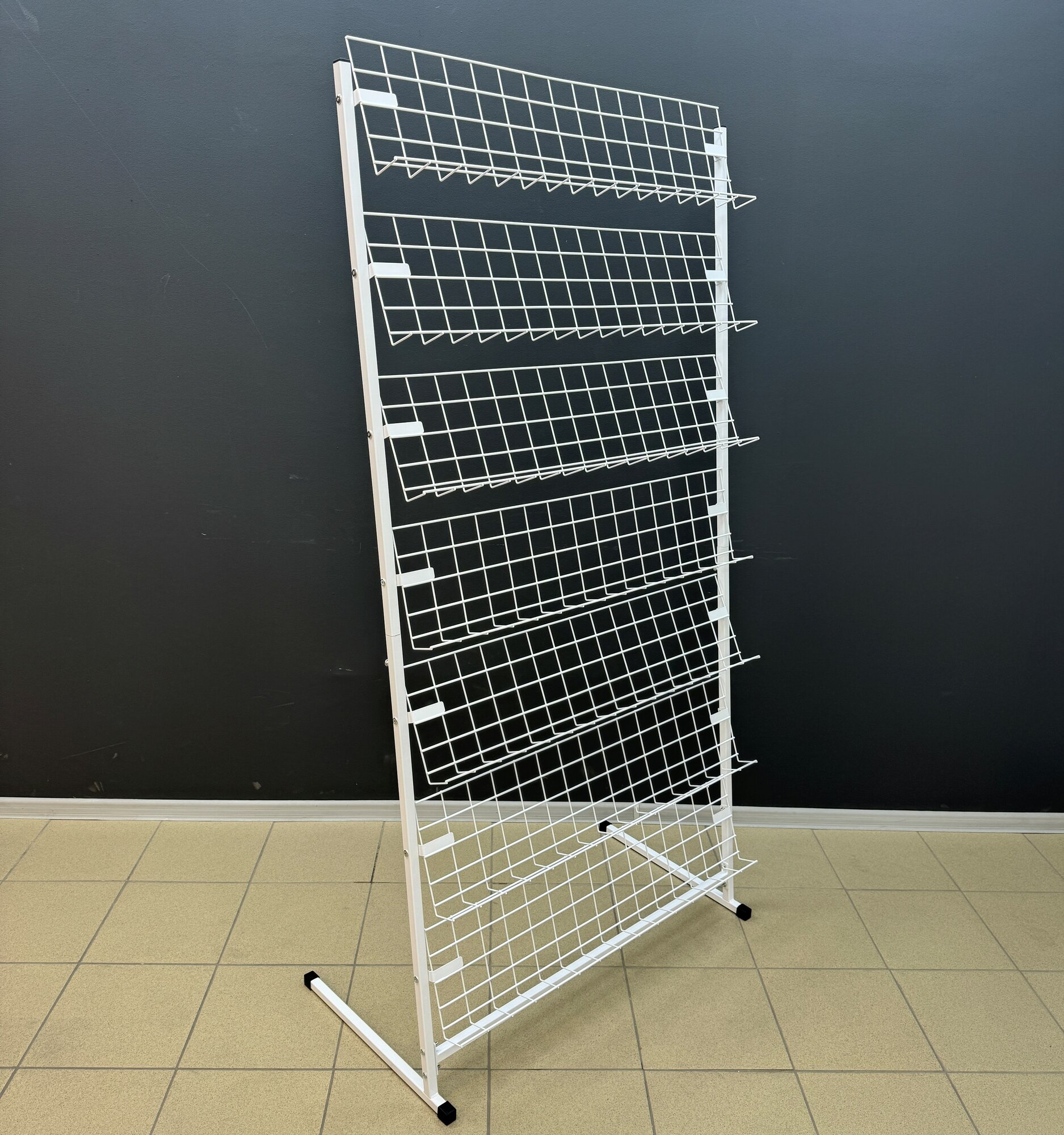 Стойка для журналов, газет и обувной продукции П7 представляет собой прочную и надежную конструкцию, которая станет незаменимым помощником в организации пространства.