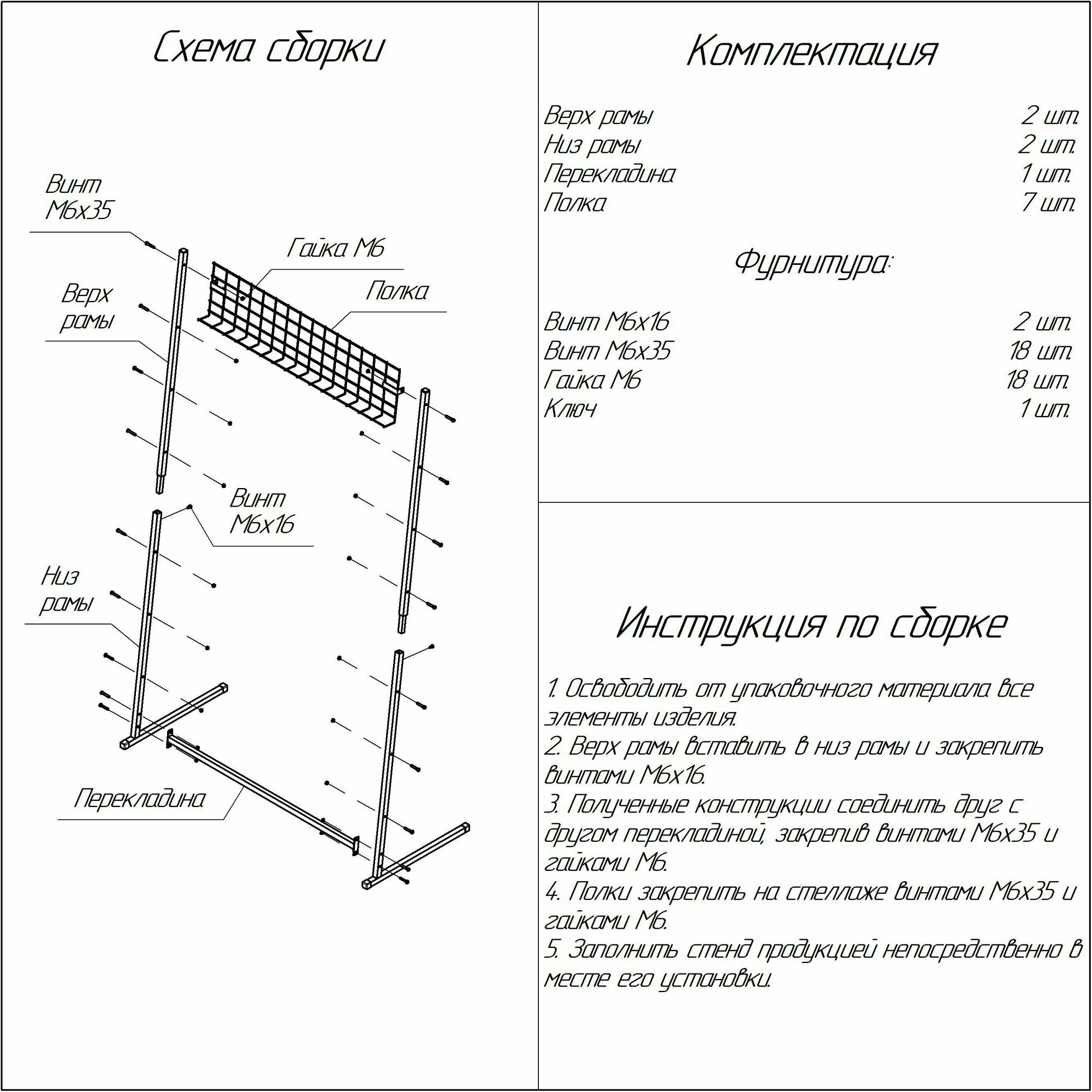 Стойка оснащена семью сетчатыми полками, которые рассчитаны на формат А4.