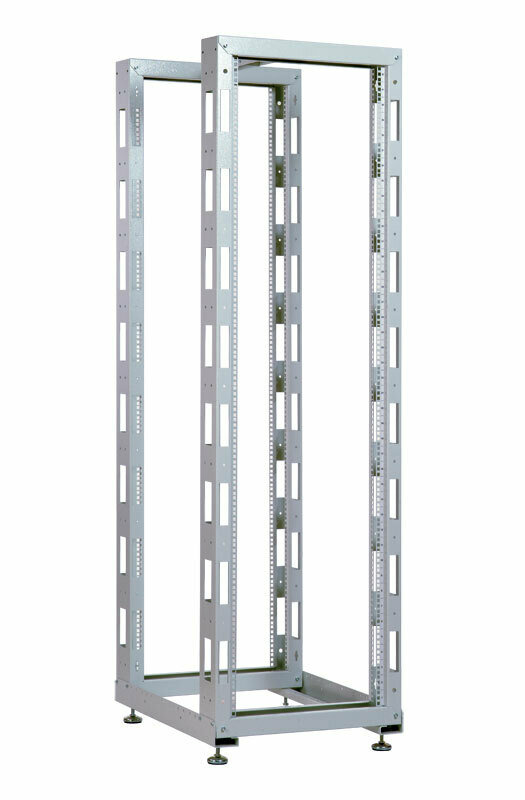 Универсальные стойки 19 имеют полностью разборную двухрамную конструкцию, каркас повышенной жесткости скреплен болтами с внутренними шестигранниками. Вертикальные направляющие имеют юнитовую маркировку. Для удобства монтажа и коммутации оборудования предусмотрены развитая перфорация, широкий спектр аксессуаров и система заземления. Двухрамная универсальная стойка 19 имеет регулировку полезной глубины 750/620/580/450. При организации крупных коммутационных узлов возможно крепление стоек между собой через вертикальный кабельный органайзер. Удобство установки обеспечивают массивные опорные кронштейны и регулируемые винтовые опоры (ножки), компенсирующие неровности пола.
