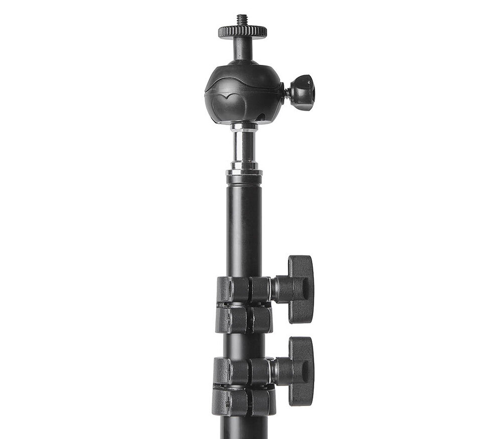Шаровая головка целиком выполнена из пластика, она предназначена для установки легких аксессуаров, таких как накамерные вспышки или небольшие светодиодные панели. Нагрузка 5 кг дана для использования стойки без головки, со студийным оборудованием.