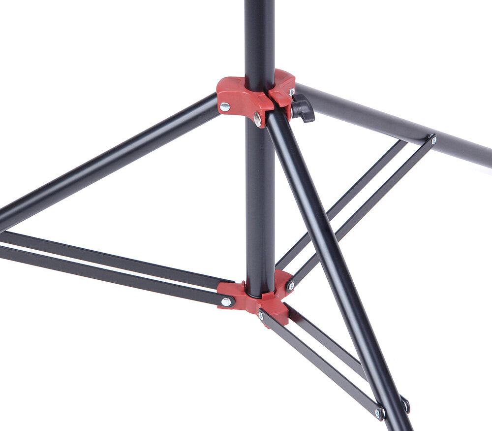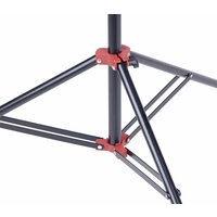 Стальная стойка-тренога с пружинной амортизацией и шаровой головкой (для легких аксессуаров). Максимальная высота 240 см, минимальная 87 см, на верхней секции адаптер-шпигот 5/8” с винтом 1/4". Складные секции, ножки изготовлены из стали, зажимы – алюминиевый сплав. Пружинный амортизатор предохранит оборудование от удара при слишком быстром складывании секций (например, при ослаблении винтового зажима). Допустимая вертикальная (осевая) нагрузка - 5 кг.