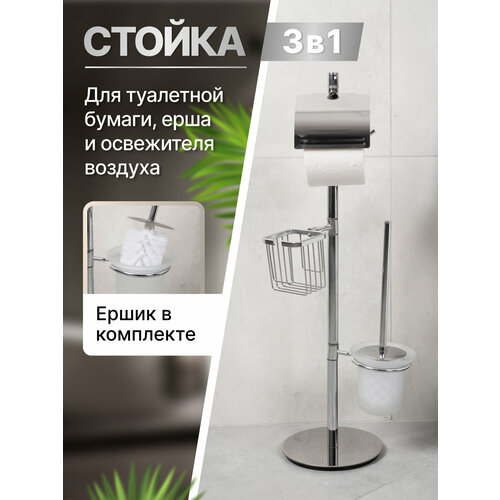 Купить Стойка Fora «3 в 1» — держатель для туалетной бумаги и освежителя воздуха, ершик с доставкой по всей России.