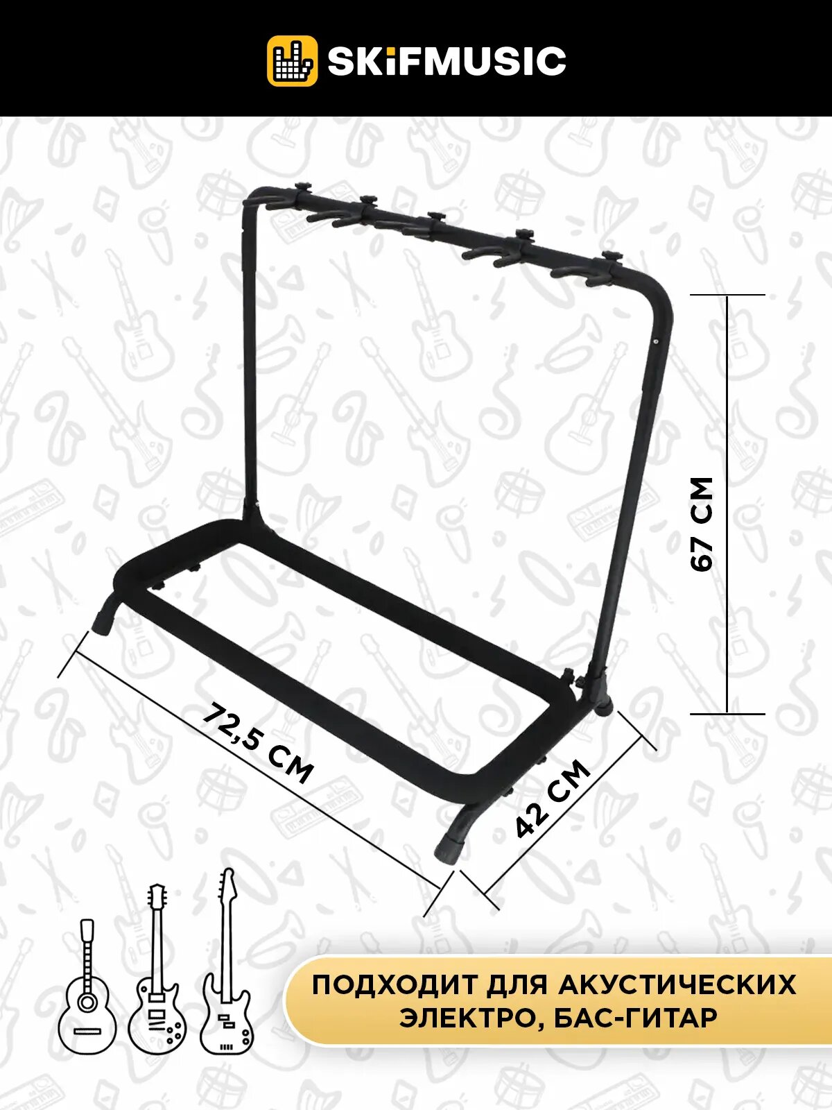 Стойка рассчитана на размещение пяти гитар одновременно, что позволяет сэкономить место в студии или на сцене.