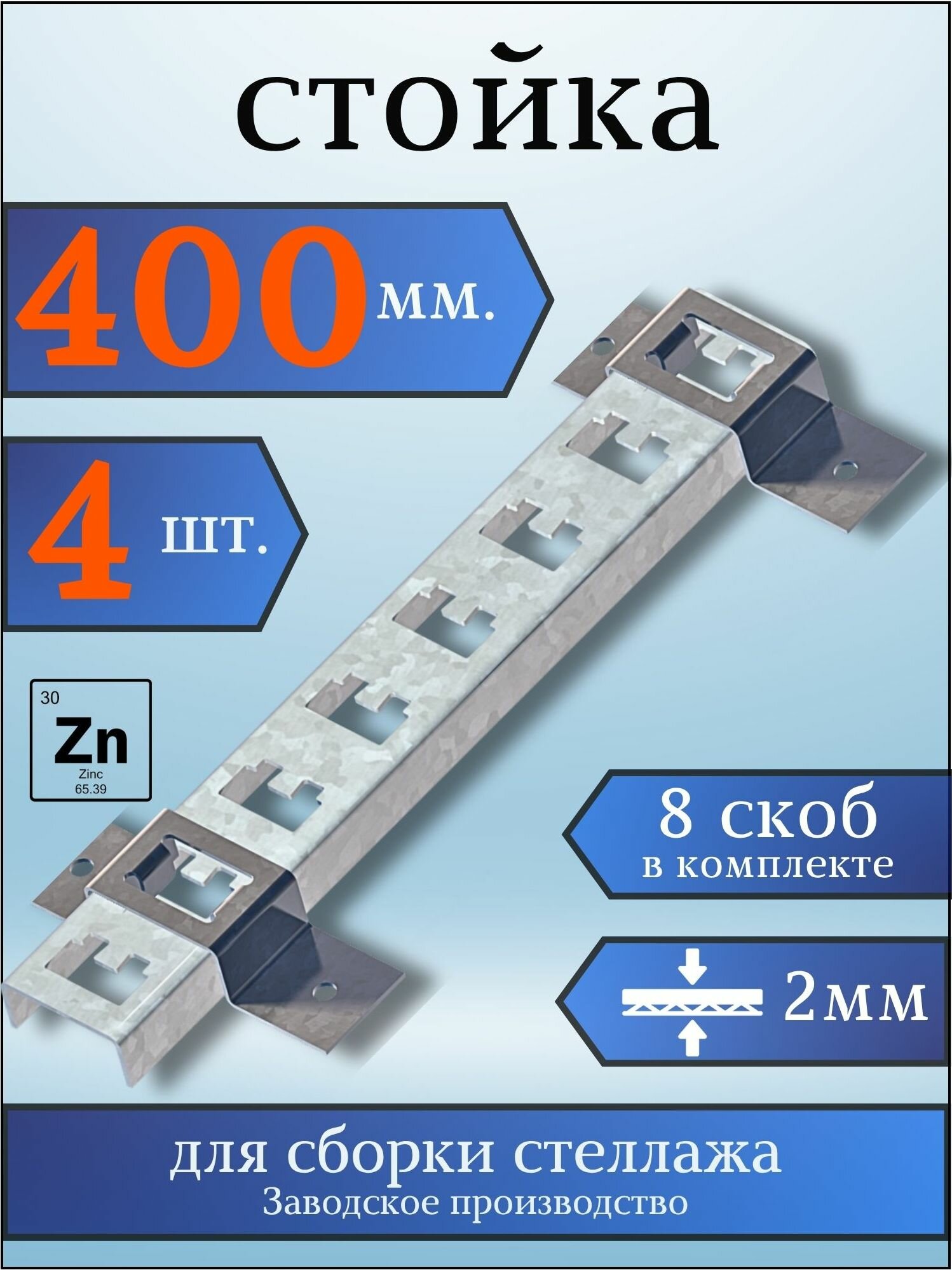 Дополнительные стойки высотой 400 мм для металлического стеллажа - это идеальное решение для расширения функциональности и увеличения вместимости Вашей системы хранения. Укомплектованные скобами крепления, они обеспечивают надежную фиксацию полок и других элементов стеллажа. Установка дополнительных стоек позволит Вам создать более гибкую конфигурацию стеллажа и эффективно использовать доступное пространство. Стойки изготовлены из прочной оцинкованной стали, что гарантирует долгий срок службы и надежность конструкции. Дополнительные стойки 400 мм - отличное дополнение к Вашему металлическому стеллажу, обеспечивающее удобство и функциональность в хранении Ваших вещей.