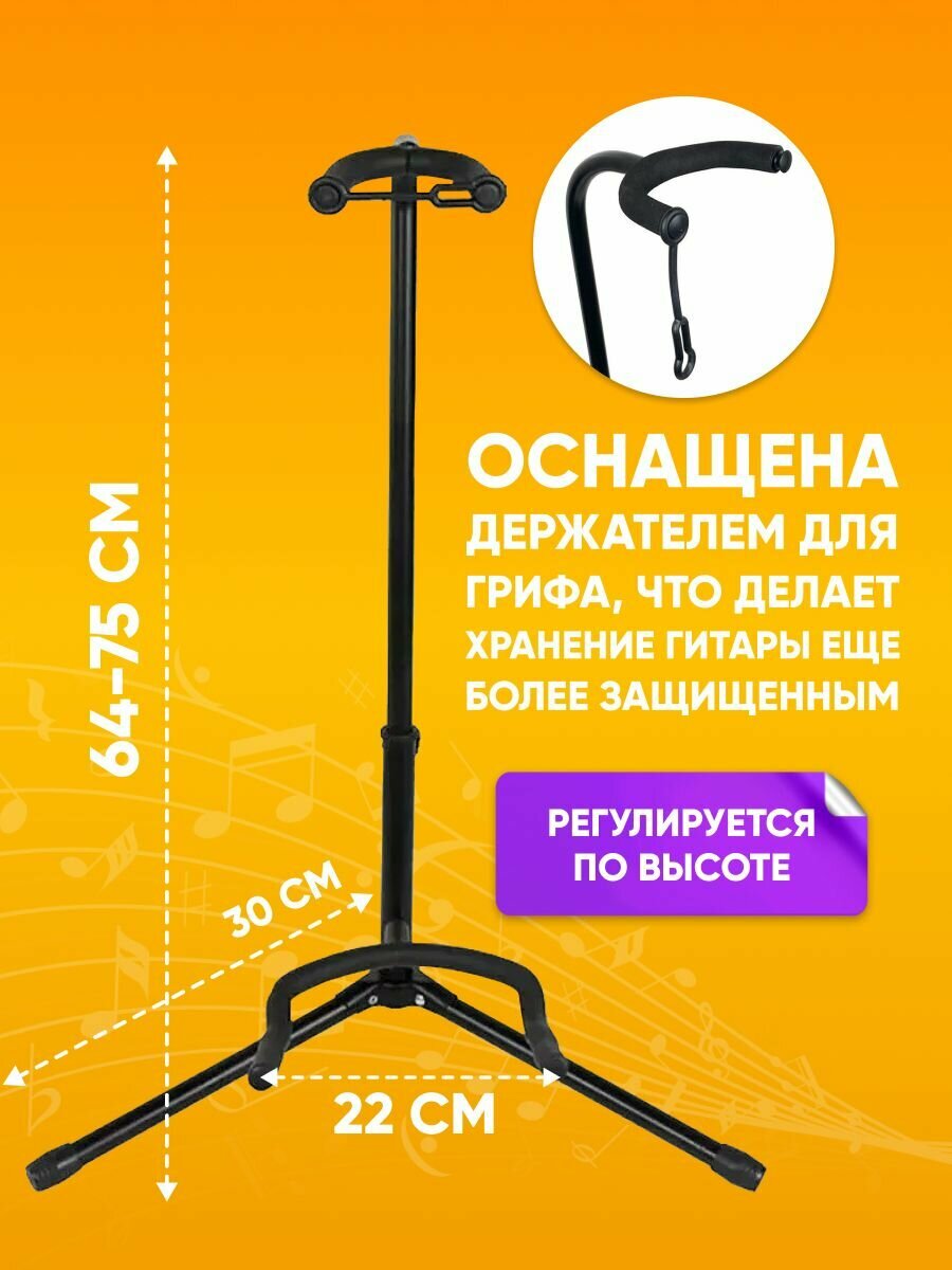 Стойка подставка для гитары универсальная напольная / Держатель для акустической, электро- и бас-гитары, черный / Подставка универсальная для всех типов гитар с держателем для грифа, 64-75 см: сравнение цен, характеристики, фото, актуальное наличие и цены.