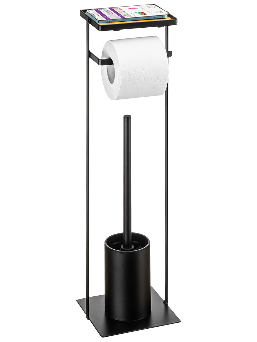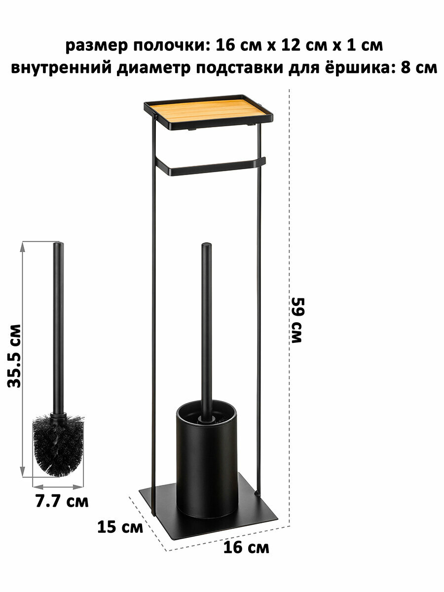 Купить Стойка / подставка для туалетной бумаги и ершика 16х15х59 см El Casa Черная с доставкой по всей России.