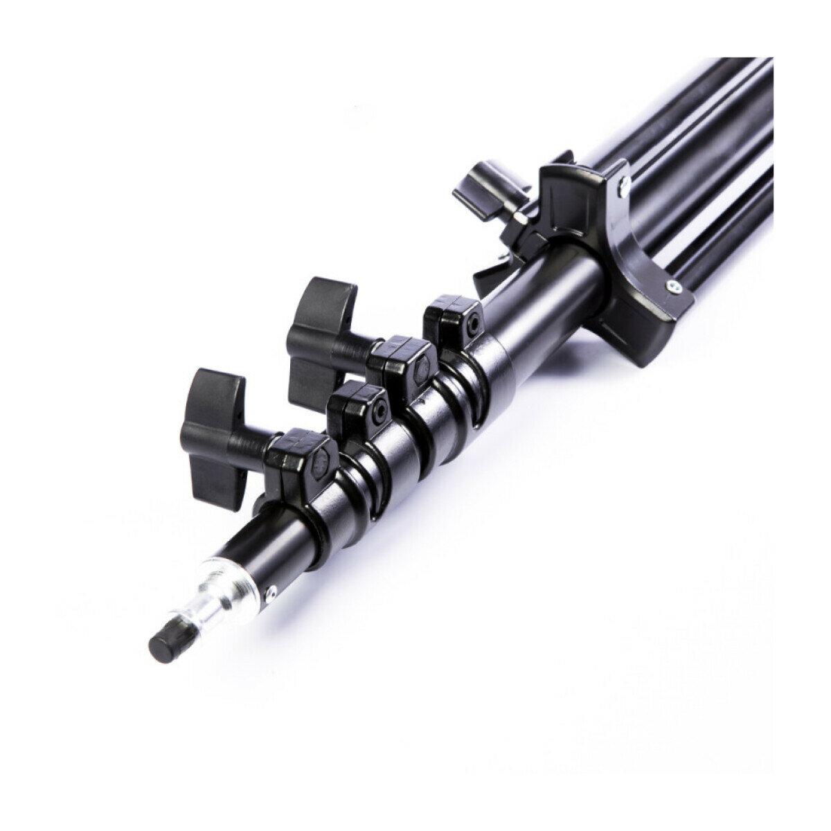Популярная среди профессионалов модель, которую удобно использовать как для съемки в студии, так и для выездной съемки. Несмотря на небольшой вес и компактный размер данная стойка выдерживает нагрузку до 7 кг, что позволяет устанавливать на нее мощные профессиональные приборы с тяжелыми насадками. Дополнительно на данную модель можно установить набор колес, который облегчит работу в студии.
