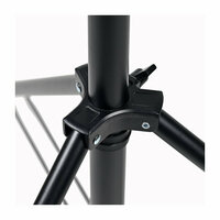 Особая конструкция с круглыми ножками обеспечивает исключительную устойчивость даже на неровных поверхностях, а также позволяют установить колеса для повышения мобильности. Металлические зажимы с удобными рукоятками гарантируют надёжную фиксацию всех секций.