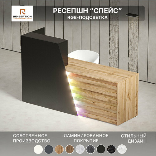 Стойка Ресепшн «Спейс» Черная+Дуб Вотан / ЛДСП/ Для администратора/Дизайнерская/Черный/ 200х120х60см/C Подсветкой RGB: сравнение цен, характеристики, фото, актуальное наличие и цены.