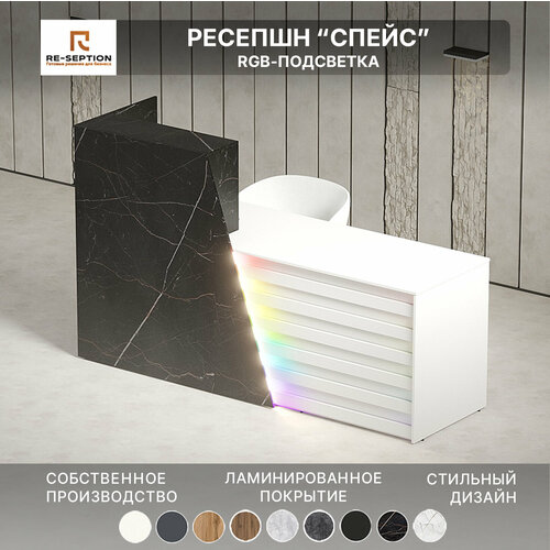 Хотите, чтобы ваши клиенты были в восторге от посещения вашего офиса или салона красоты? Стойка ресепшн «Спейс» станет настоящей изюминкой помещения и произведет неизгладимое впечатление на посетителей. Современный асимметричный дизайн, гармоничное сочетание цветов, необычная подсветка ― стойка администратора «Спейс» охарактеризует владельца бизнеса, как человека смелого, заботливого, обладающего превосходным вкусом и идущего в ногу со временем . Стойка «Спейс» выгодно дополнит дизайн помещения, сделает его более презентабельным и рациональным. Двухуровневые стойки администратора — это актуальное решение для зонирования пространства и организации рабочего места персонала. Вы можете разместить за стойкой необходимую оргтехнику и другие рабочие принадлежности, не нарушая при этом целостность дизайна вашего офиса или салона, и не создавая ощущения беспорядка. Яркая и необычная стойка «Спейс» обязательно украсит ваш бизнес. В нашем магазине вы можете купить стойку рецепции «Спейс» в разной цветовой гамме: от контрастных черно-белых сочетаний до гармоничных и мягких однотонных решений. Размеры стойки для персонала «Спейс» тоже можно выбрать, в соответствии с вашими потребностями. Также варьируется и подсветка: от простой однотонной до RGB премиум.