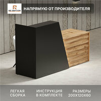 Стойка Ресепшн «Спейс» Черная+Дуб Вотан / ЛДСП/ Для администратора/ Офиса/ Дизайнерская/Черный/ 200х120х60см/C Подсветкой: сравнение цен, характеристики, фото, актуальное наличие и цены.
