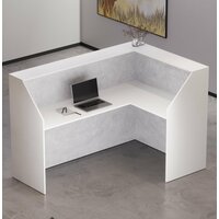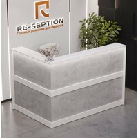 Купить Стойка Ресепшн Стандарт/Ресепшн Угловой Белый+Цемент светлый /ЛДСП/ Для администратора/Светло-Серая/ 150х120х60см/ С Подсветкой RGB с доставкой по всей России.