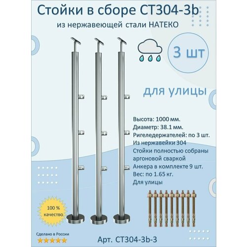 Стойка/Столб/Балясина в сборе из нержавеющей стали. Натеко. Диаметр 38 мм. Высота 1000 мм. Для улицы. 3 шт.: сравнение цен, характеристики, фото, актуальное наличие и цены.