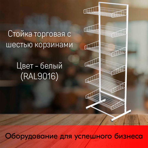 Стойка торговая универсальная 1850х440мм, (6 корзин ПК. П.02) 440 мм (сварная рама), RAL9016, Белый: сравнение цен, характеристики, фото, актуальное наличие и цены.