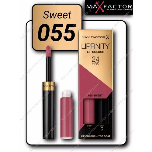 Ищете помаду, которая будет держаться на губах с утра до вечера? Стойкая губная помада с бальзамом Max Factor Lipfinity обеспечивает 24-часовую стойкость, устойчивость к стиранию и максимальный комфорт для губ. Набор Max Factor Lipfinity Lip Colour тон 055 Sweet помада и блеск — оригинальная, обновленная стойкая губная помада с двухступенчатым нанесением для привлекательных губ на весь день. C ней вы оставите впечатление о себе надолго. Lipfinity Lip Colour: чувственные, модные оттенки, которые держатся весь день. Будьте в центре внимания благодаря насыщенному цвету, который остается на губах до 24 часов. Формула: блеск для губ и бальзам создают великолепный цвет, добавляют естественное свечение и держатся до 24 часов. Новый аппликатор для яркого, насыщенного цвета, который сохраняется на губах весь день. Ваши губы будут выглядеть идеально весь день. От первого утреннего кофе до вечернего коктейля. Советы визажиста: двухступенчатое нанесение: 1) нанесите Lipfinity Lip Colour на чистые, сухие губы. Сначала подведите губы с помощью аппликатора Infinity. Затем переверните аппликатор и накрасьте губы. Подождите одну минуту, пока высохнет слой цвета, и затем 2) нанесите увлажняющий бальзам, который придаст губам гладкость и привлекательный блеск. Наносите бальзам регулярно в течение дня. Оттенок, представленный на экране, зависит от настроек вашего монитора. Фактический цвет косметического средства может незначительно отличаться от него.