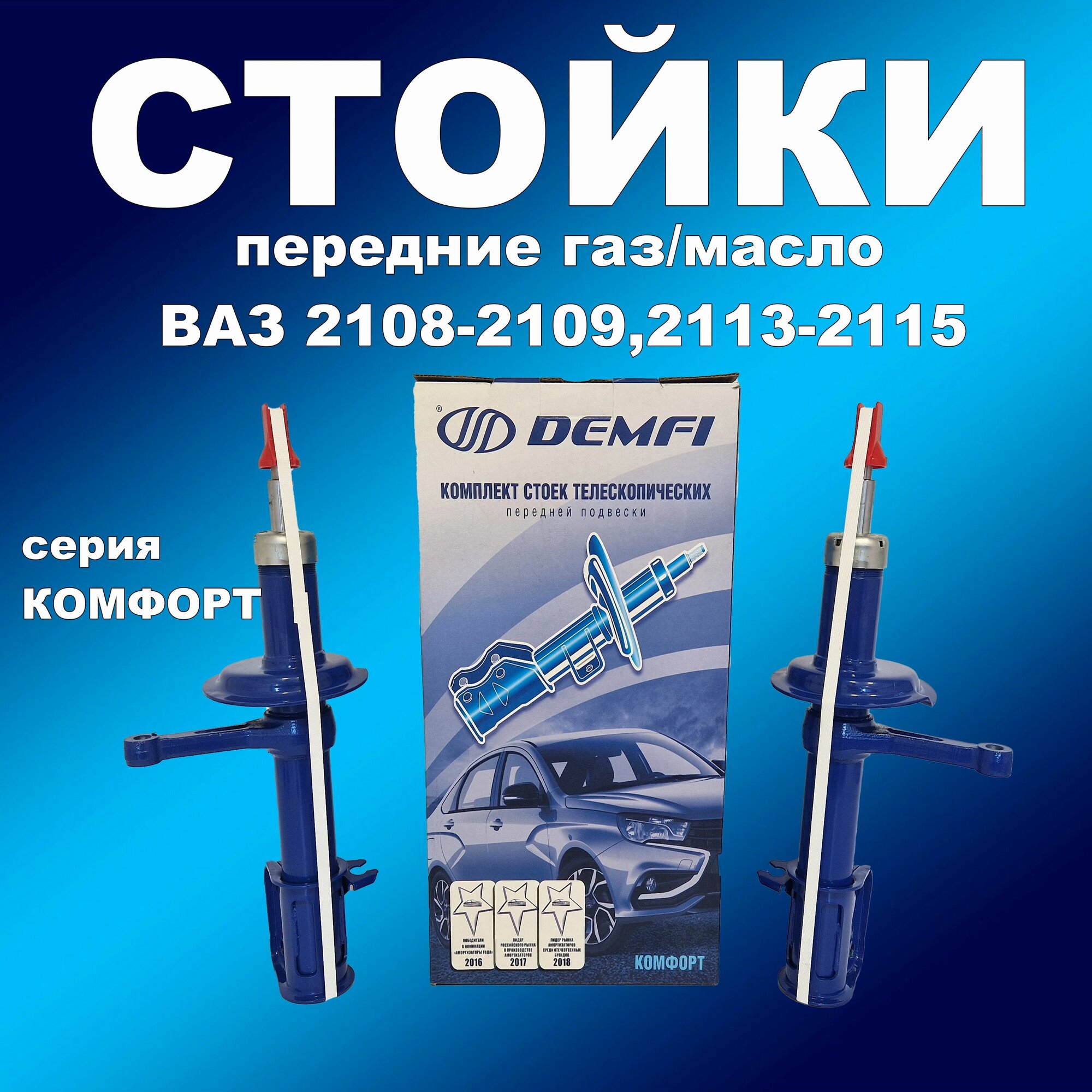 Купить Стойки передние 2шт для Лада 2108-2109,2113-2115 газомасляные DEMFI Комфорт с доставкой по всей России. Стойки передние 2шт для Лада 2108-2109,2113-2115 газомасляные DEMFI Комфорт: сравнение цен, характеристики, фото, актуальное наличие и цены.