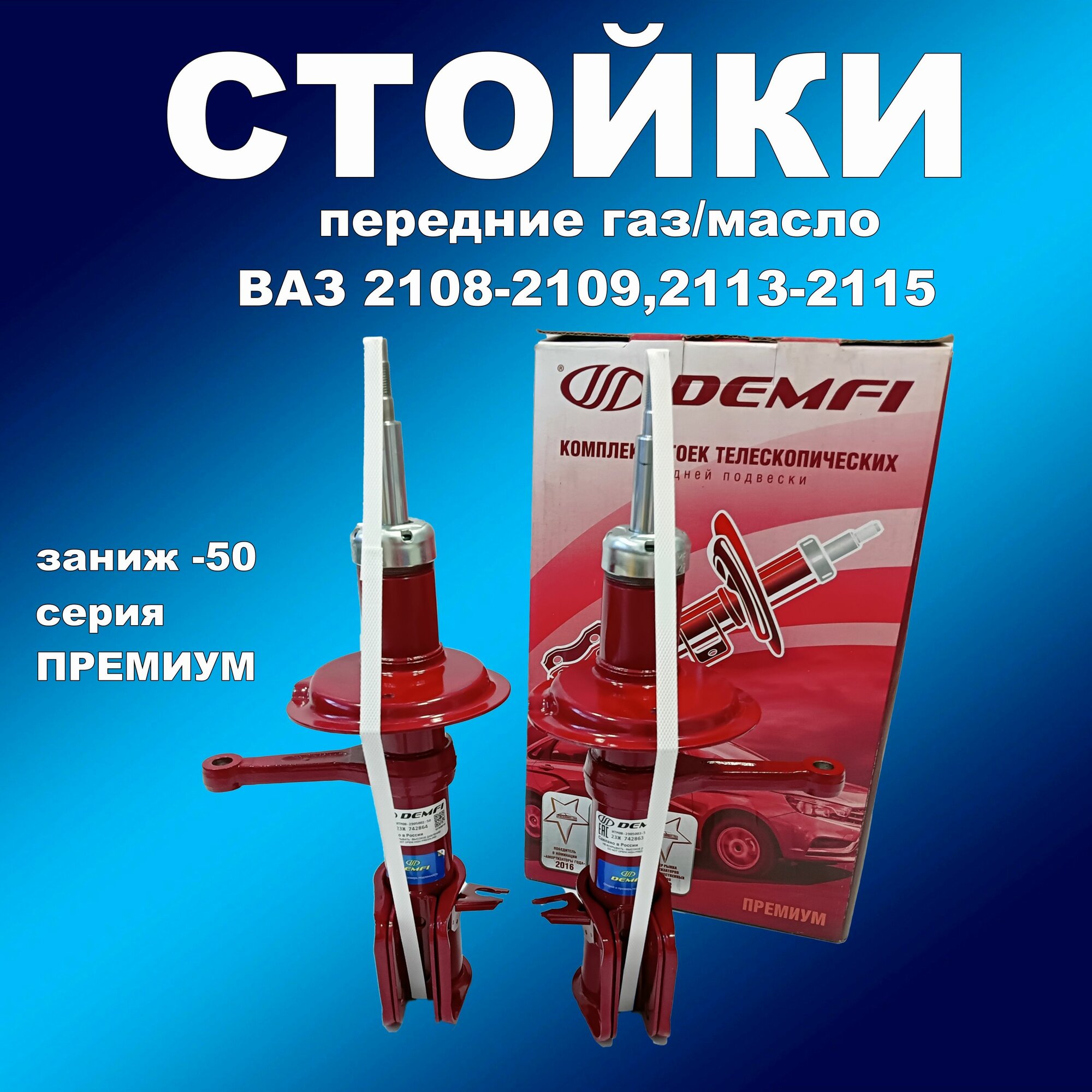 Купить Стойки передние 2шт для Лада 2108-2109,2113-2115 под пружину с заниж. -50 газомасляные Демфи Премиум с доставкой по всей России. Стойки передние 2шт для Лада 2108-2109,2113-2115 под пружину с заниж. -50 газомасляные Демфи Премиум: сравнение цен, характеристики, фото, актуальное наличие и цены.