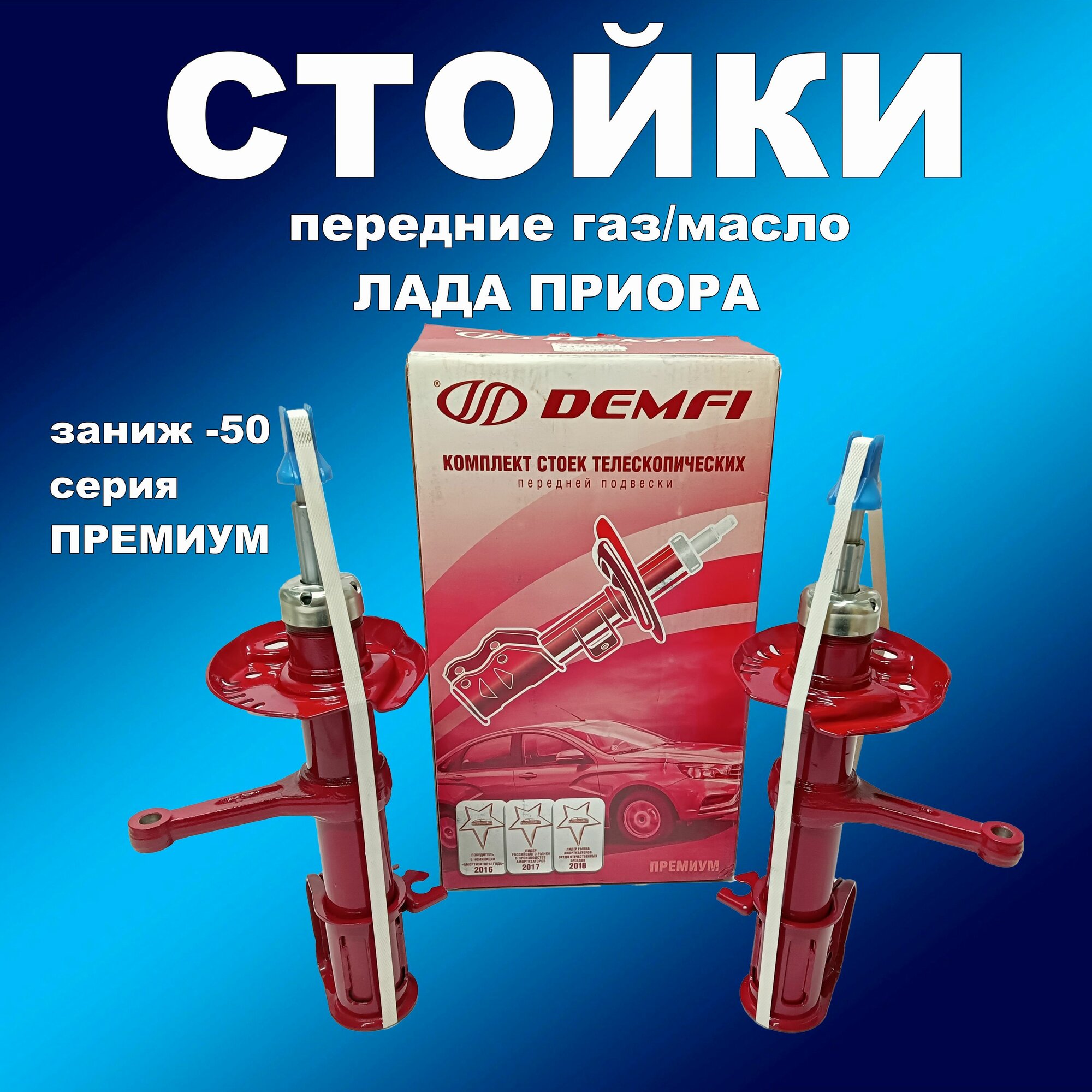 Купить Стойки передние 2шт для Лада Приора под пружину с заниж. -50 газомасляные Демфи Премиум с доставкой по всей России. Стойки передние 2шт для Лада Приора под пружину с заниж. -50 газомасляные Демфи Премиум: сравнение цен, характеристики, фото, актуальное наличие и цены.