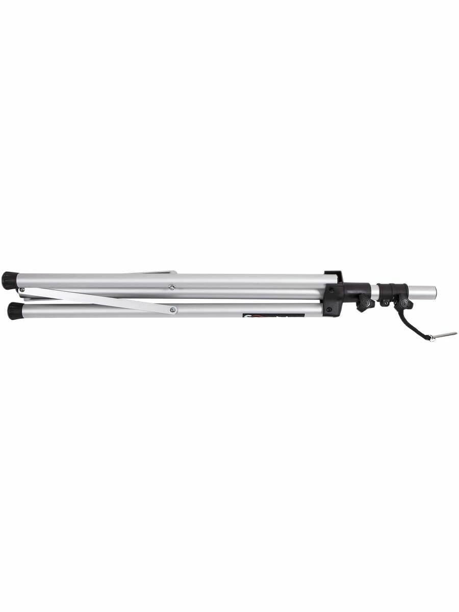 Прочная конструкция – изготовлена из алюминия, обеспечивает устойчивость и долговечность. Широкое основание – диаметр 38 мм повышает стабильность даже при максимальной нагрузке. Телескопическая труба – диаметр 35 мм, надежно фиксирует оборудование.
