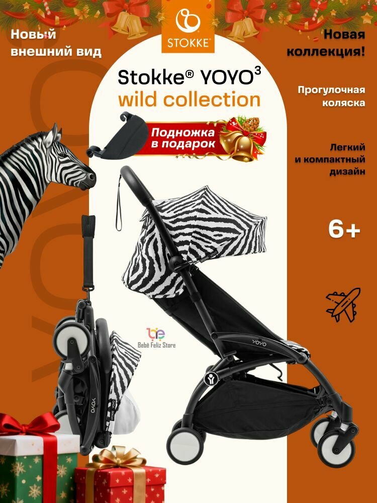Купить Stokke Yoyo 3 Прогулочная коляска легкая для путешествий в ручную кладь Wild Collection Black/Zebra с доставкой по всей России.