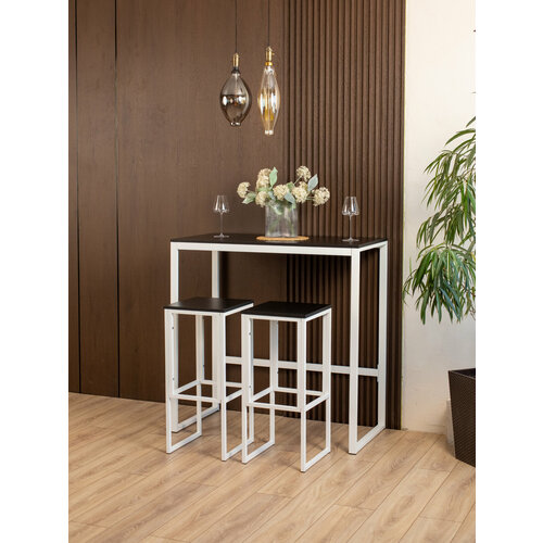 Белый цвет каркаса стойки визуально расширяет пространство, что актуально для небольших помещений. Стол подходит для создания уютного уголка на кухне, в гостиной или даже в кафе и ресторанах. За барным столом могут сидеть до 4 человек.