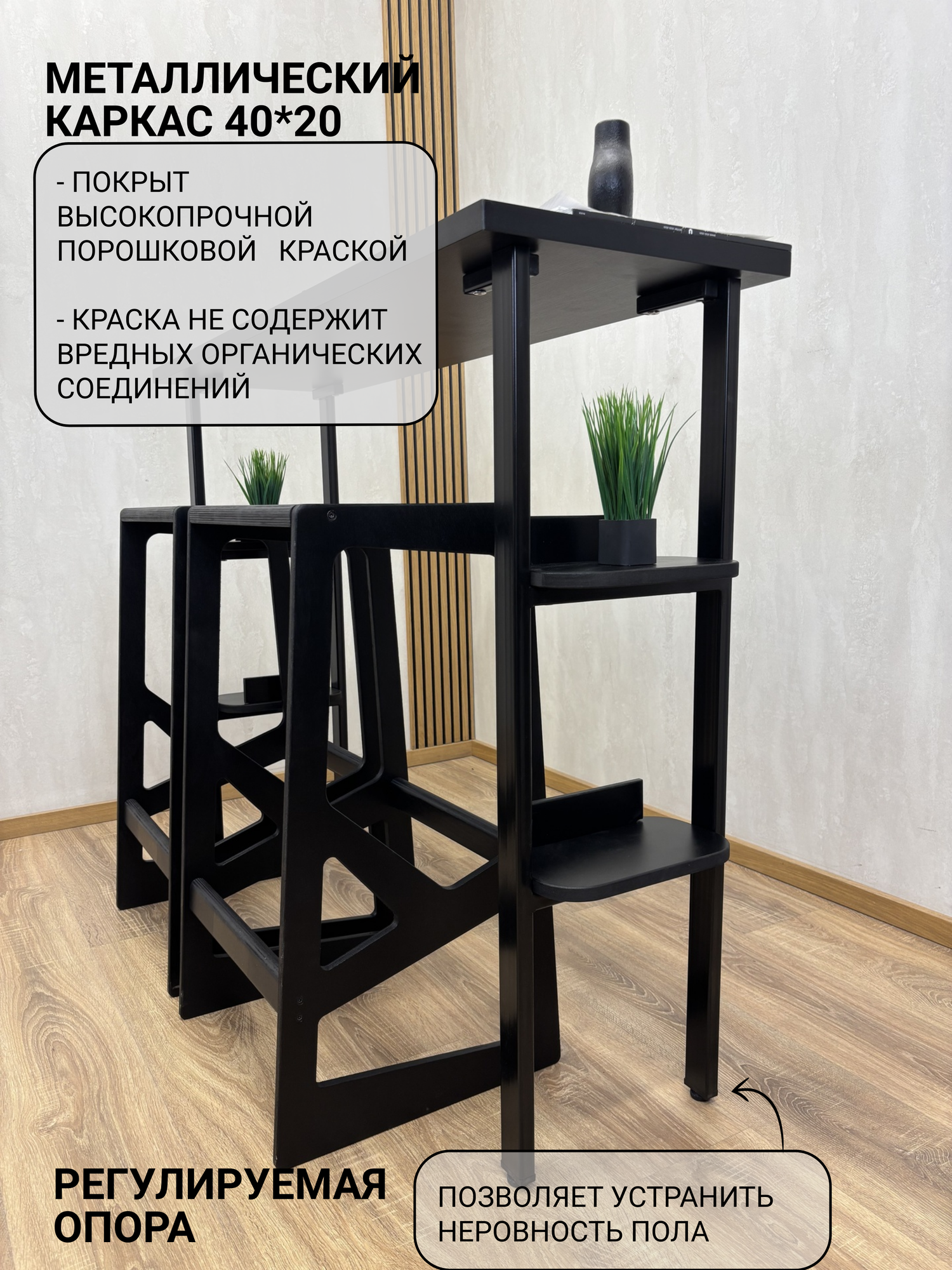 Ножки сделаны из качественной стали и покрыты порошковой краской, что дает уверенность в долговечности покрытия. Столешница выполнена из ЛДСП премиум класса толщиной 25-26 мм для надежности изделия.