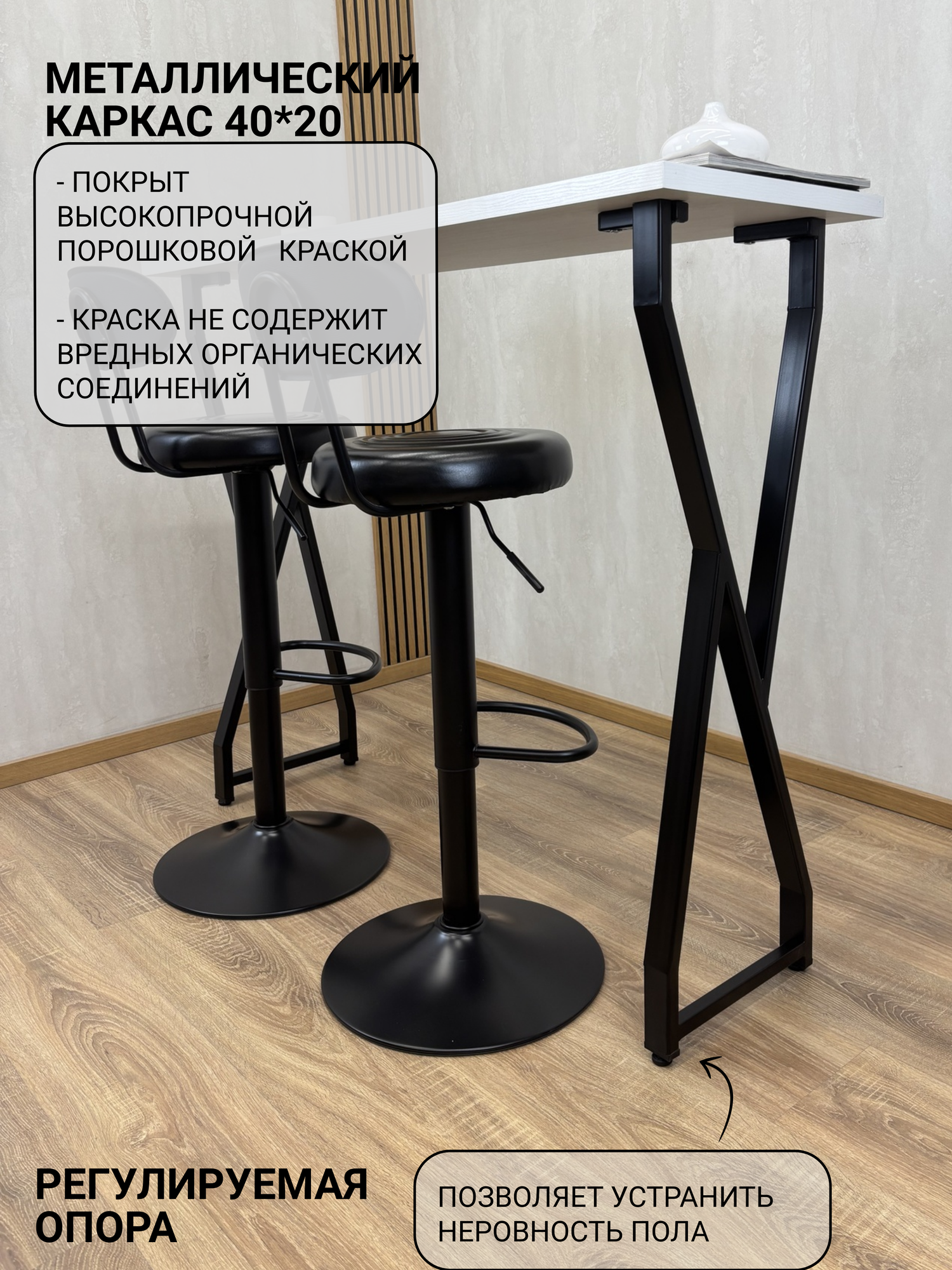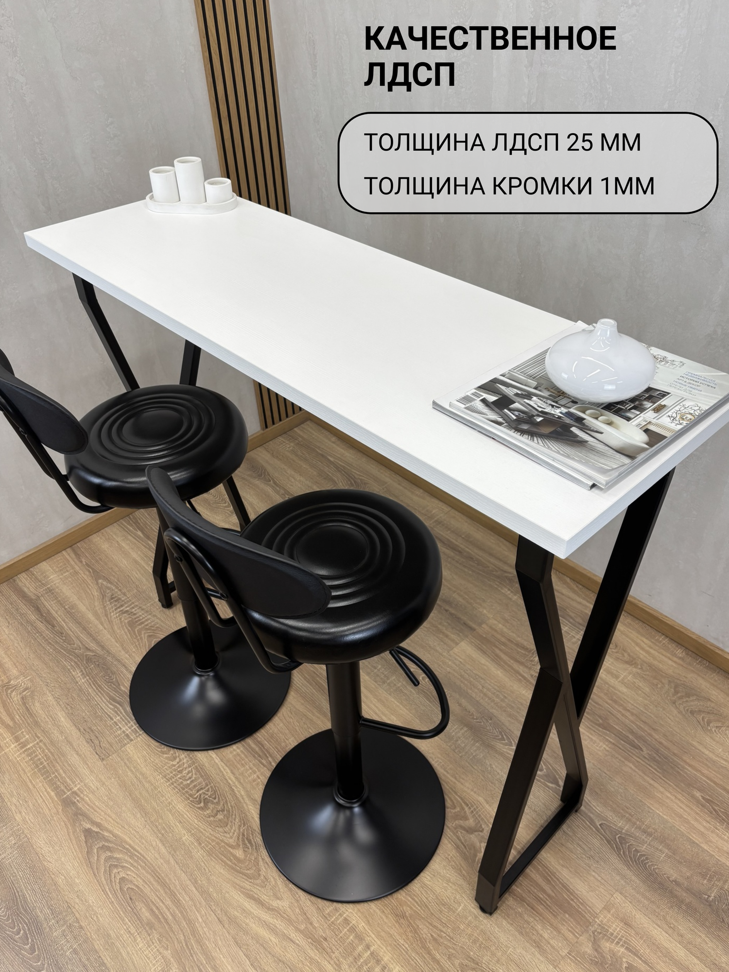 Барный стол VOLT на металлическом регулируемом основании и столешницей из ЛДСП австрийского производителя - отличное решение! Функционально, красиво и экологично! Ножки сделаны из качественной стали и покрыты порошковой краской, что дает уверенность в качестве и долговечности изделия. Наш стол дополнит любой интерьер: Лофт, Ретро, Минимализм, Индустриальный, Хайтек, Скандинавский, Молодежный и станет предметом привлекающим внимание! В ассортименте магазина также представлены разнообразные вариации металлического основания. Столешница представлена в разных цветовых решениях и имеет фактуру дерева. Регулируемые ножки позволяют установить стол даже при неровной поверхности пола. Легкая сборка. Ключ для сборки в комплекте. Пользуйтесь с удовольствием!