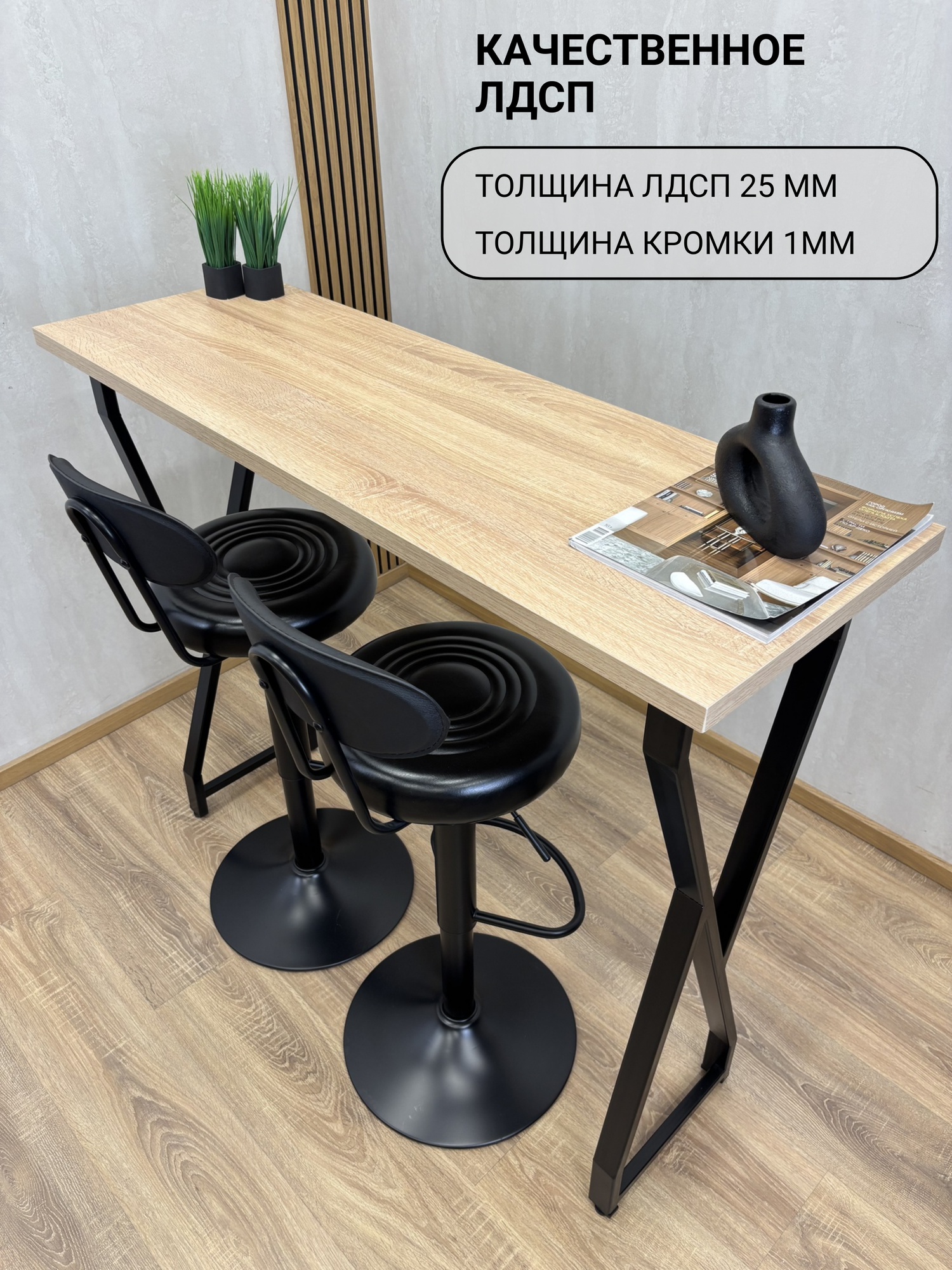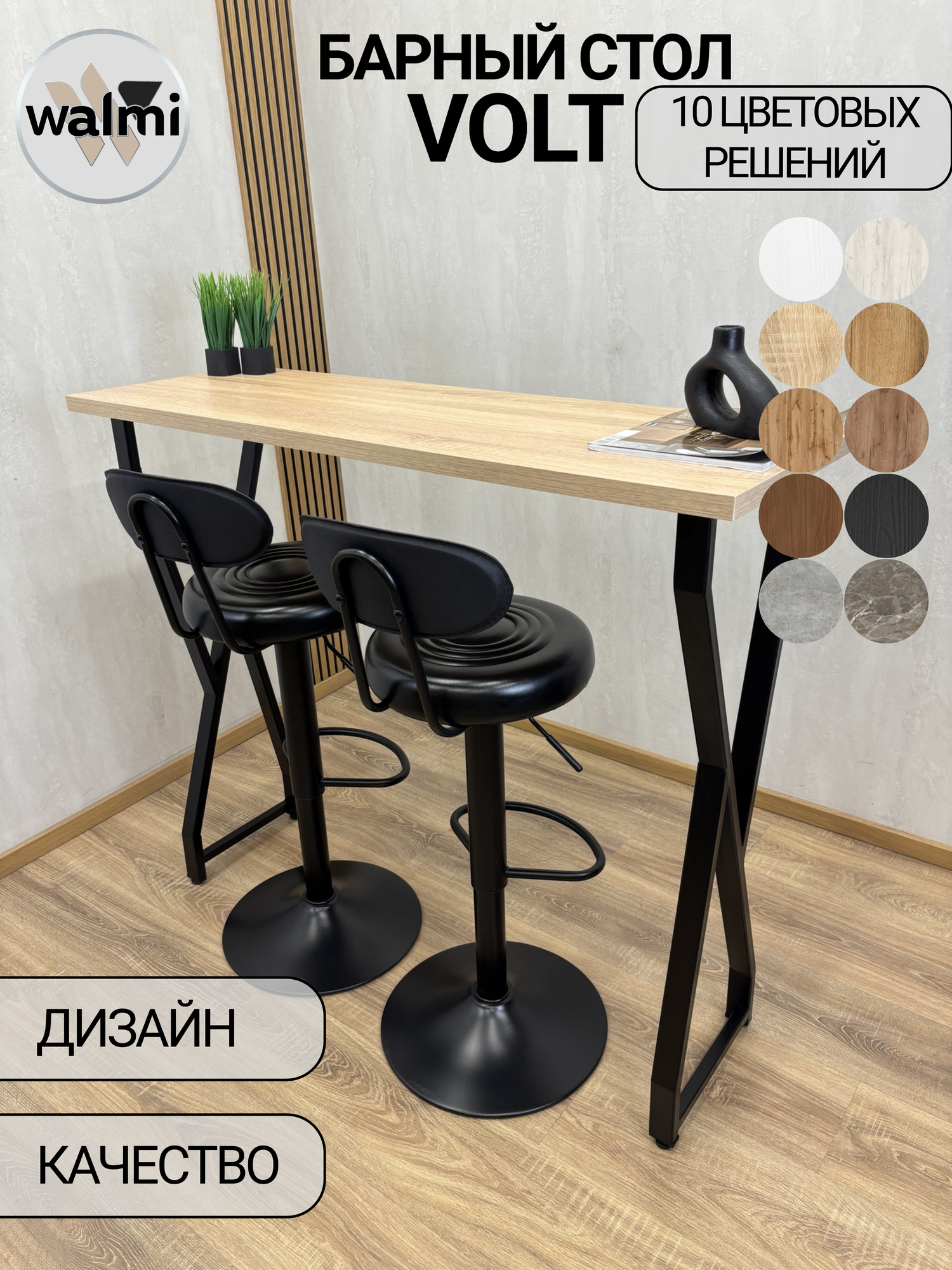 Барный стол VOLT на металлическом регулируемом основании и столешницей из ЛДСП австрийского производителя - отличное решение! Функционально, красиво и экологично! Ножки сделаны из качественной стали и покрыты порошковой краской, что дает уверенность в качестве и долговечности изделия. Наш стол дополнит любой интерьер: Лофт, Ретро, Минимализм, Индустриальный, Хайтек, Скандинавский, Молодежный и станет предметом привлекающим внимание! В ассортименте магазина также представлены разнообразные вариации металлического основания. Столешница представлена в разных цветовых решениях и имеет фактуру дерева. Регулируемые ножки позволяют установить стол даже при неровной поверхности пола. Легкая сборка. Ключ для сборки в комплекте. Пользуйтесь с удовольствием!