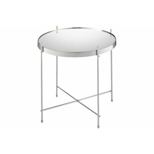 Материалы: столешница – серебряное зеркало, каркас – сталь с хромовым напылением. Размеры: диаметр – 42,7 см, высота – 45 см.