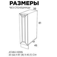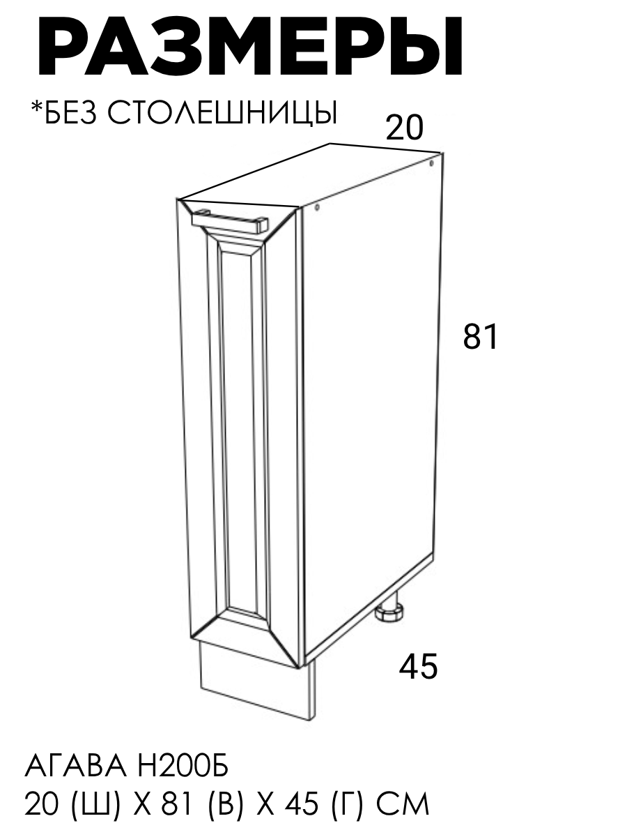 - Габариты (без столешницы): ширина — 200 мм, высота — 810 мм, глубина — 450 мм.
