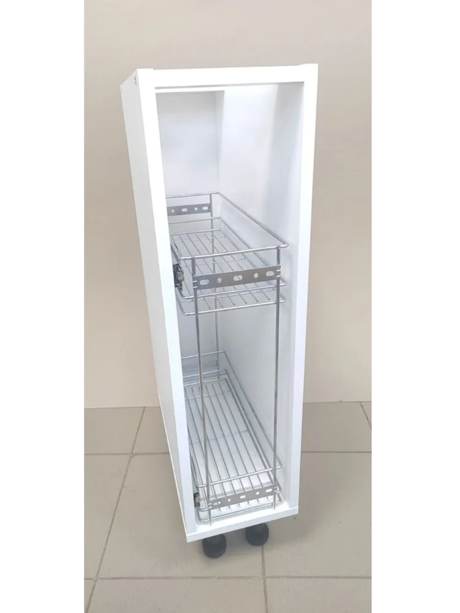 Подходит для хранения бутылок, бытовой химии, разделочных досок и других кухонных принадлежностей.