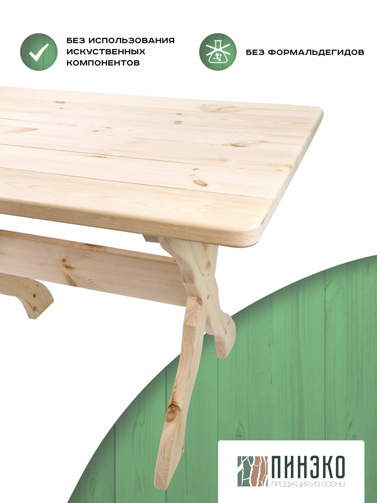 Стол изготовлен из массива Вологодской сосны, что гарантирует его прочность и долговечность. Гладкая поверхность стола обеспечивает комфортное использование и легкость в уходе.