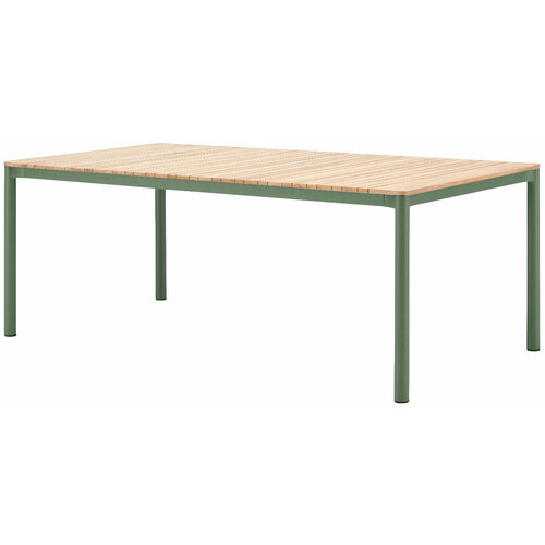 Стол деревянный обеденный Tagliamento Armona, 100х200 см, всепогодный, тик/зеленый алюминий